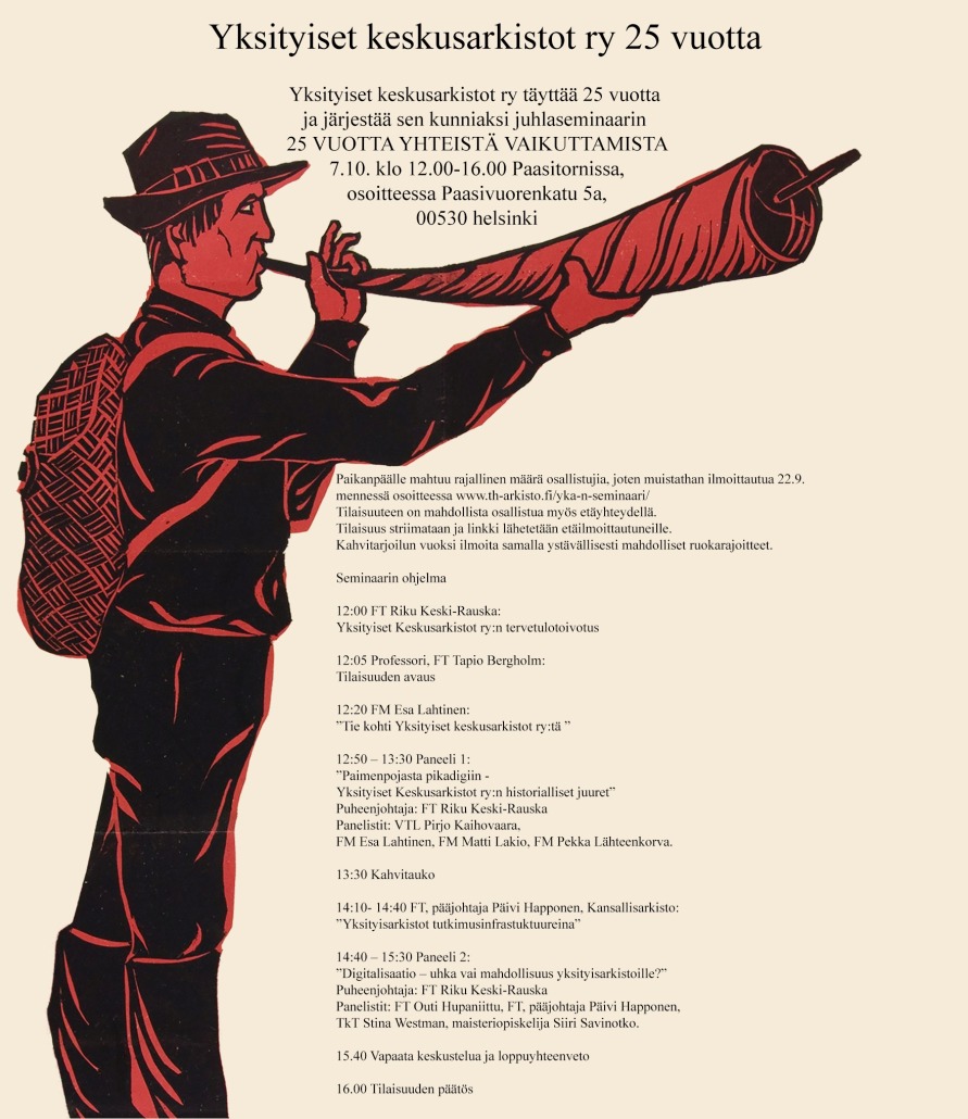 12:50 – 13:30 Paneeli 1: ”Paimenpojasta pikadigiin – Yksityiset Keskusarkistot ry:n historialliset juuret”